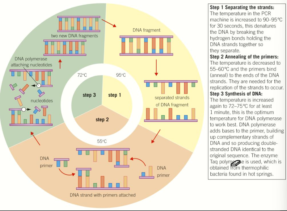 Can be repeated many times by the PCR machine, about 30 repeats will give 1 billion copies of the original sample.