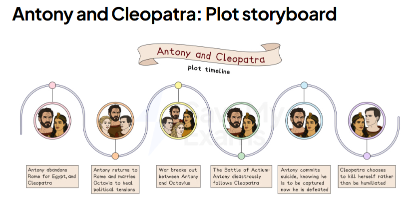 Key points: Antony prioritizes love over duty; his obsession with Cleopatra is central; Rome and politics are in the background.