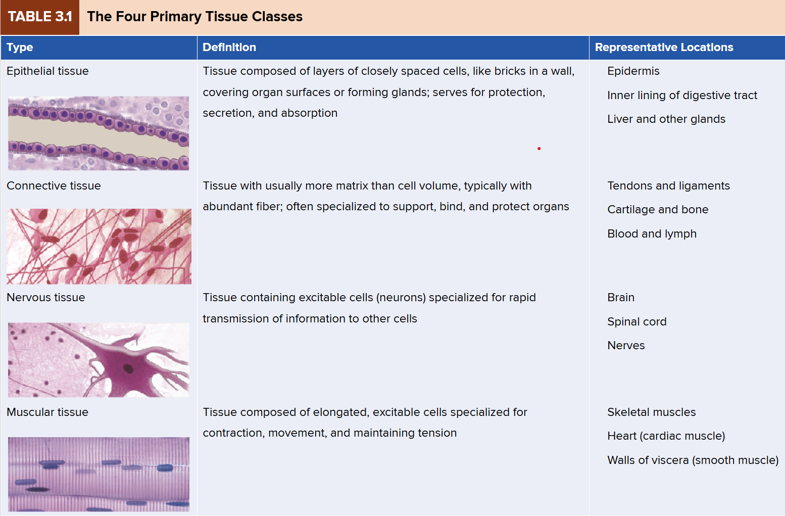 binding of organs, support, physical protection, immune protection, movement, storage, heat production, and transport