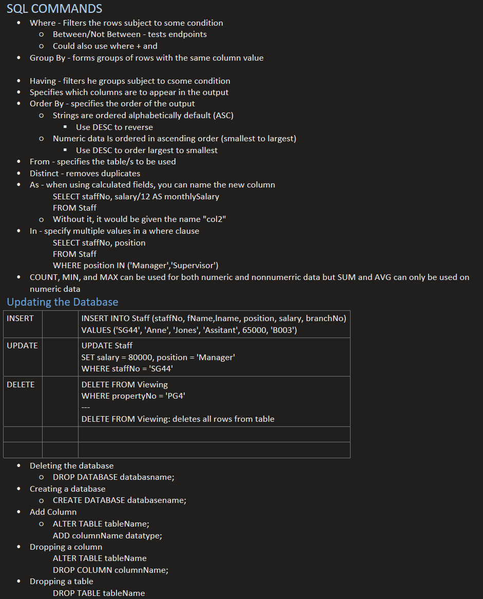 Chapter 6 and 7: SQL Commands and Data Defintion