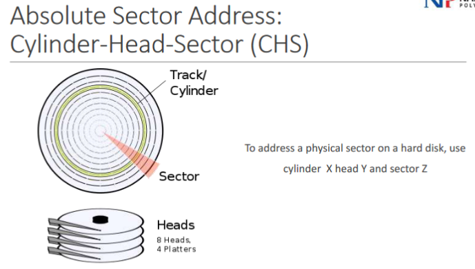 Logical Block Address (LBA) is calculated by LBA = ( c x Nheads + h) x Nsectors + ( s – 1)