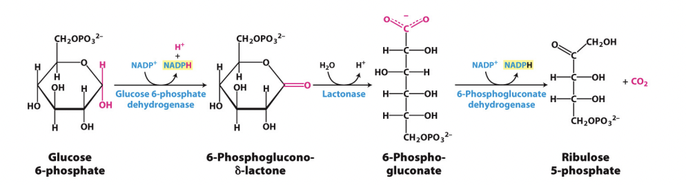 Glucose-6-phosphate dehydrogenase acts on glucose 6-phosphate and produced an NADPH