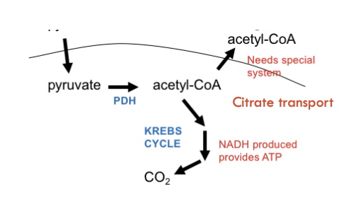 Some acetyl CoA is let out into the cytoplasm to go in the Krebs Cycle oxaloacetate to create citrate