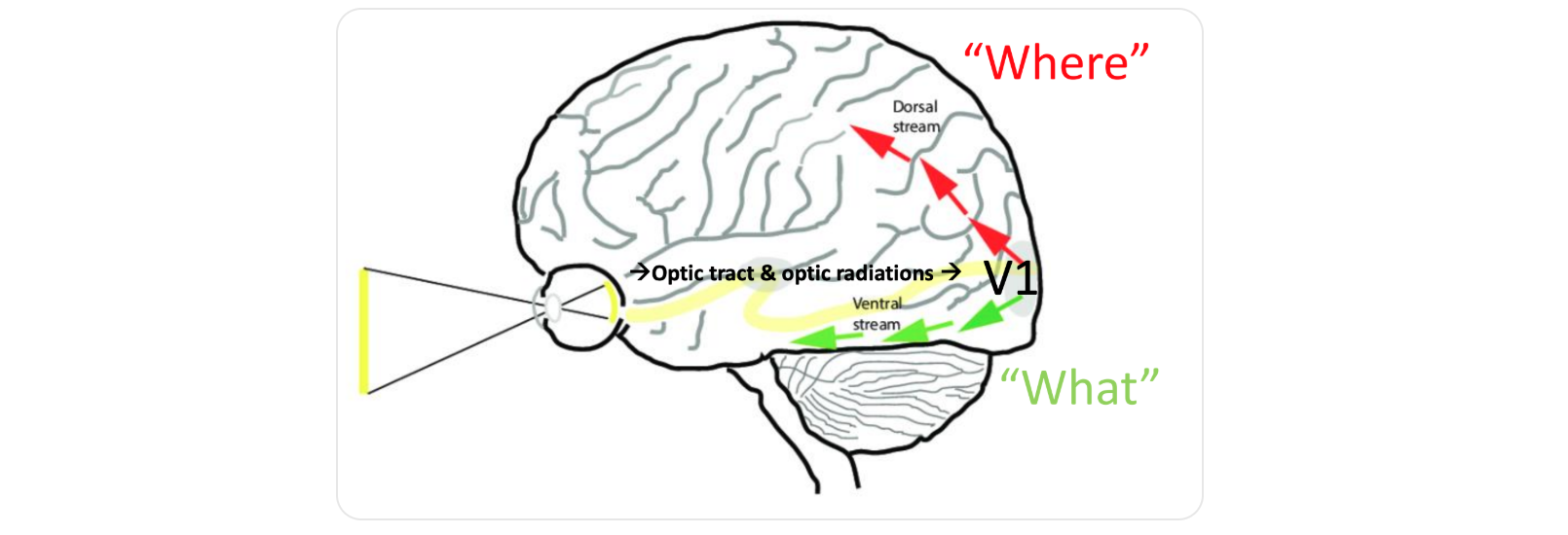 White Matter Tracts: The Inferior Longitudinal Fasciculus distributes visual information, while the Arcuate Fasciculus connects visual areas to the classic language regions.