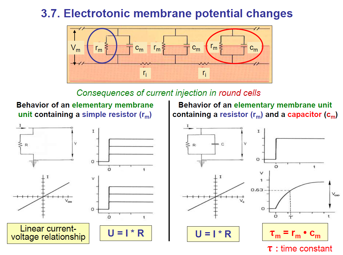 So, the cell membrane = resistor (Rm) in parallel with a capacitor (Cm).