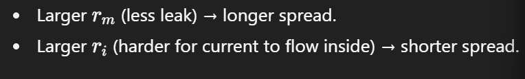 Recall: rm = membrane resistance; Cm = membrane capacitance.