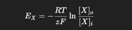 The Nernst equation tells you the equilibrium potential for a single ion (the voltage at which that ion’s net movement stops).
