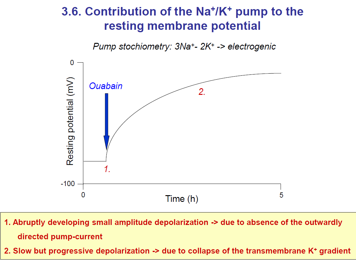 Immediate effect: loss of the pump’s electrogenic outward current → small, abrupt depolarisation.