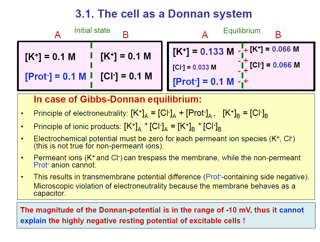 Example: On side A → [K⁺] = [Cl⁻] + [Prot⁻].