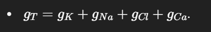 If calcium conductance (gCa) dominates, → Vm moves toward ECa≈+120 mV.