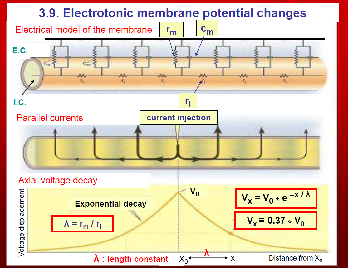 Axial resistance (ri) → resistance of the cytoplasm inside the neuron.