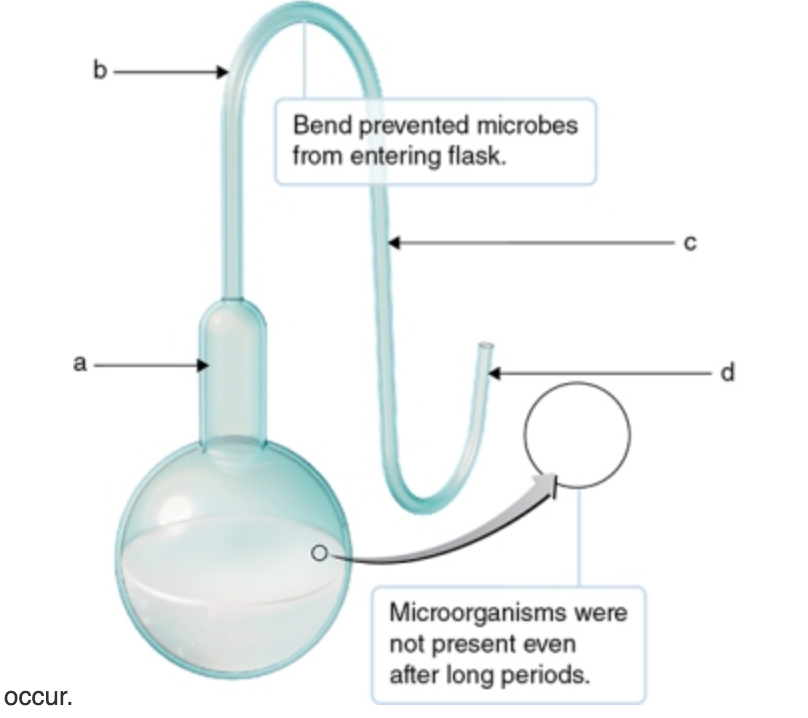 Predict which scenarios would most likely produce growth/airborne microbial contamination of sterile beef broth if Pasteur's S-shaped neck flask were cut. Scenario a: break near flask, Scenario b: break before the first curve, Scenario c: beak between the first and second curve in the S-shaped neck, Scenario d: break after the second curve in the S-shaped flask.