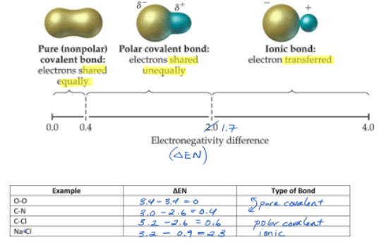 Electronegativity values can be used to determine the type of bond present in a compound