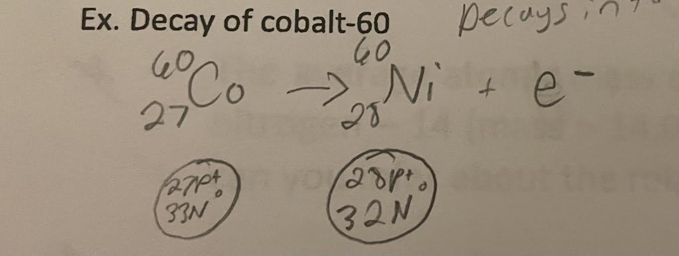 Radioisotopes are unstable because the neutrons are not properly balanced with the number of protons. This instability causes them to decay into a nuvleus that is more stable. This decay results in an atom with one more proton and one less neutron.