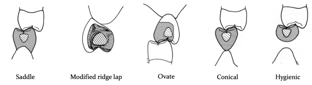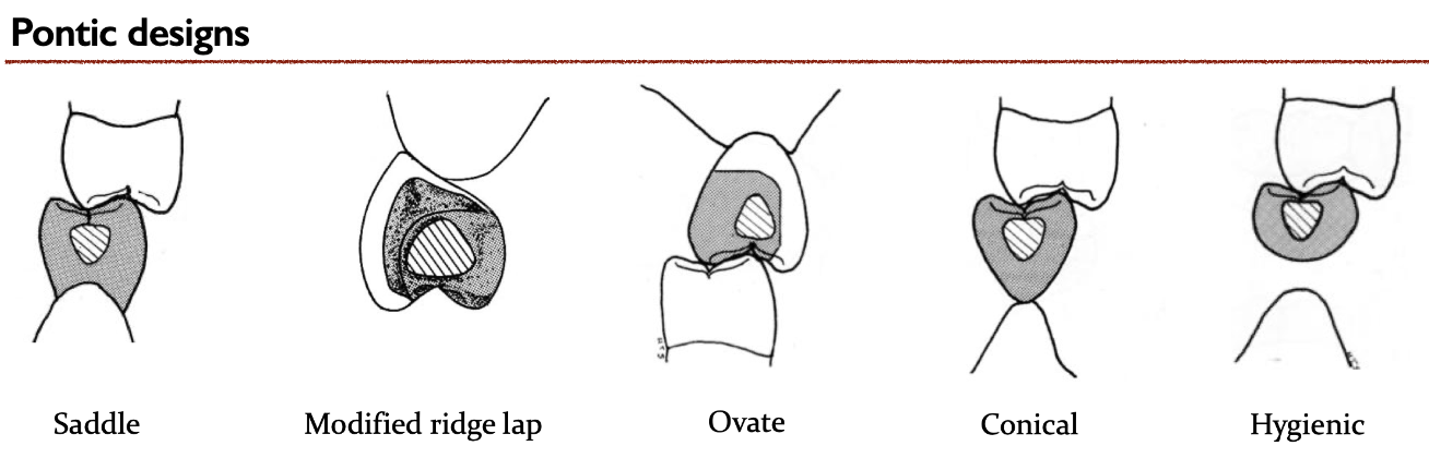 pontic= the artificial tooth on a FPD that replaces the missing natural tooth to restore function