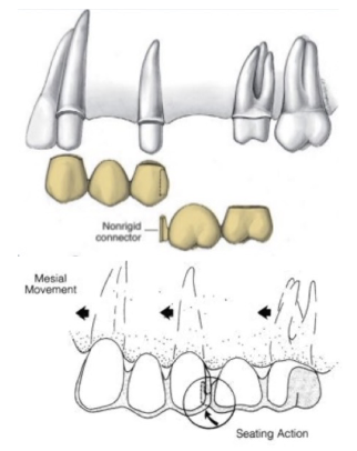 drawback in cases of compromised abutments: if one abutment fails the entire FPD will fail