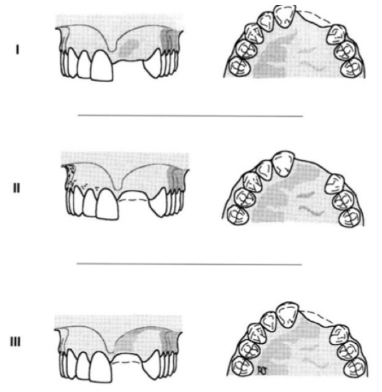 Class I: horizontal defect —> loss of facio-lingual width with normal ridge height