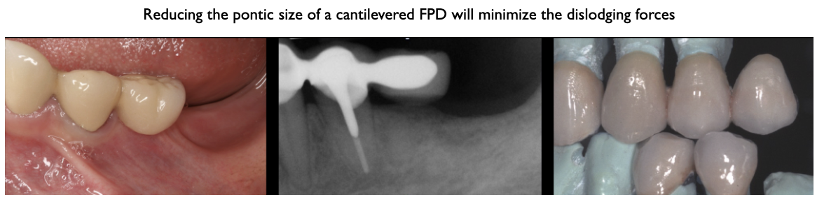 reducing the size of the pontic will reduce the dislodging forces that act on the furthest secondary abutment