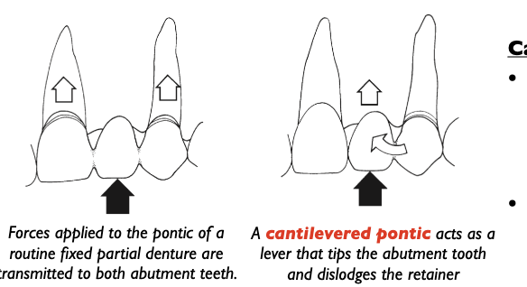 a downward occlusal force on the pontic will create an upward force on the secondary abutment (the primary abutment acts as a fulcrum)