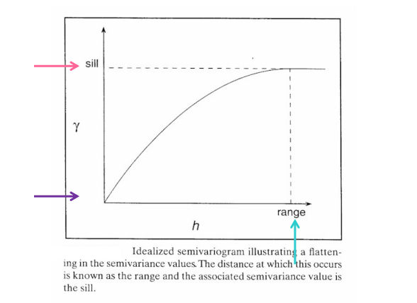range: gives an indication of distance h (lag intervals) over which spatial dependency occurs