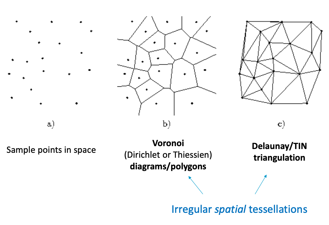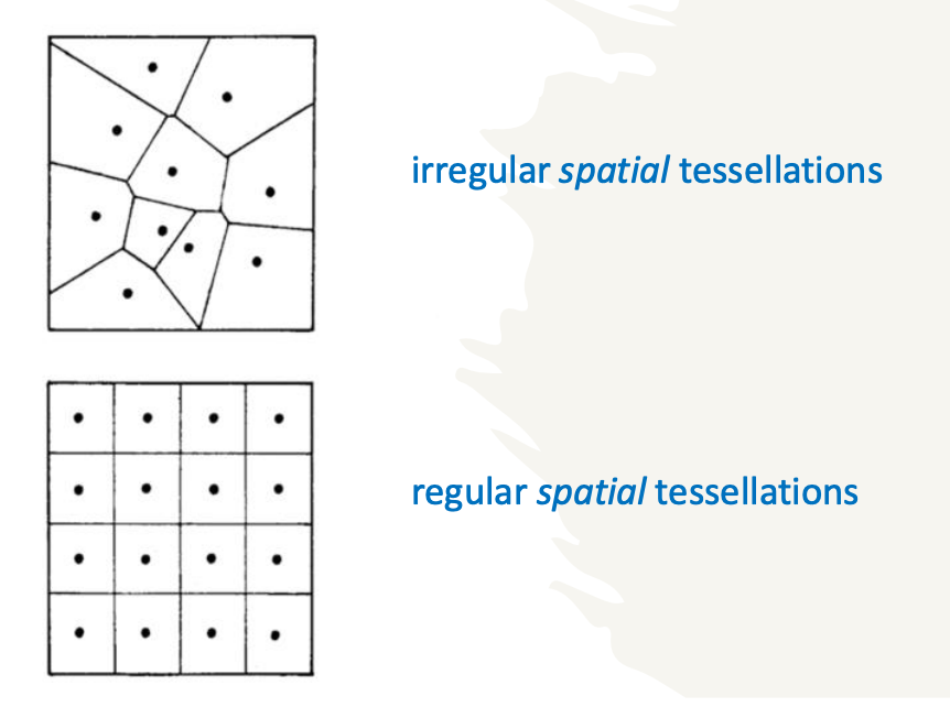 tessellation polygons divide a surface or a study region in a way that is determined by the configuration of locations of the data points