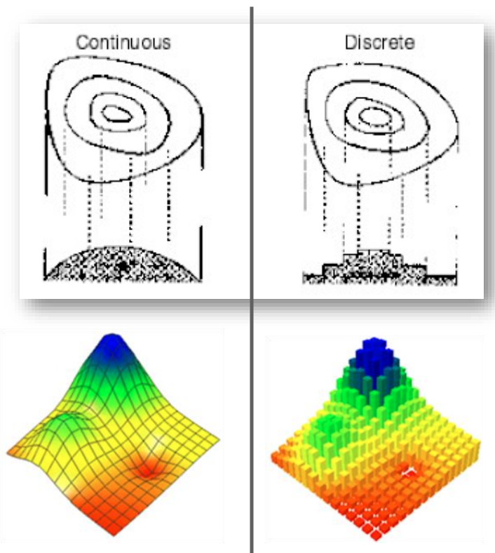 the continuous surface: defined as a feature which contains continuous information about estimated z attribute values across a given study area