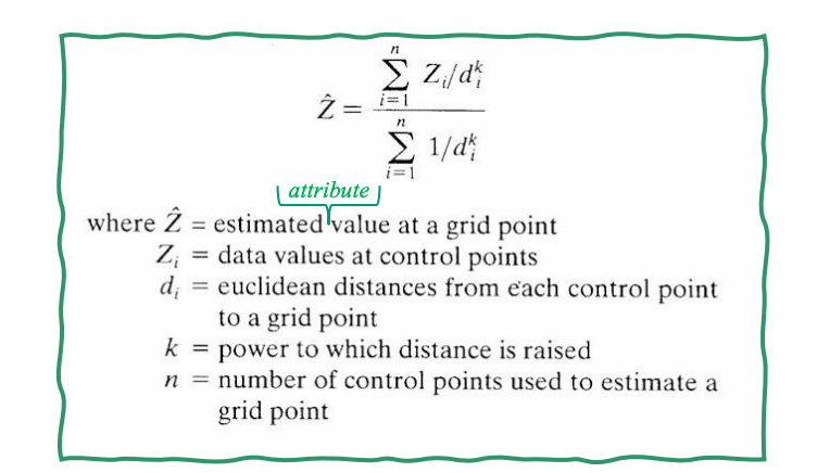 2. predicting/estimating the values at points where the attribute has not been sampled