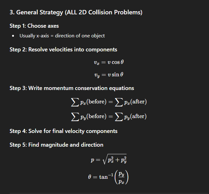 In 2D collisions, always split into x and y
