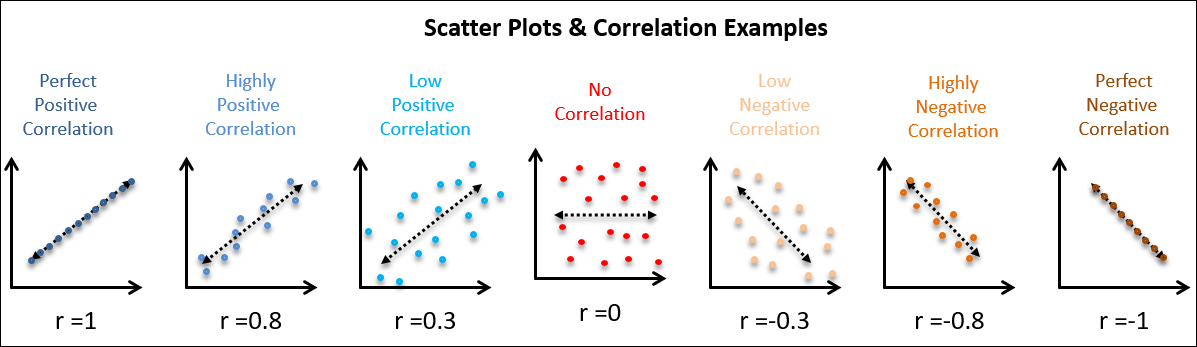 - Closer to -1, stronger negative correlation
