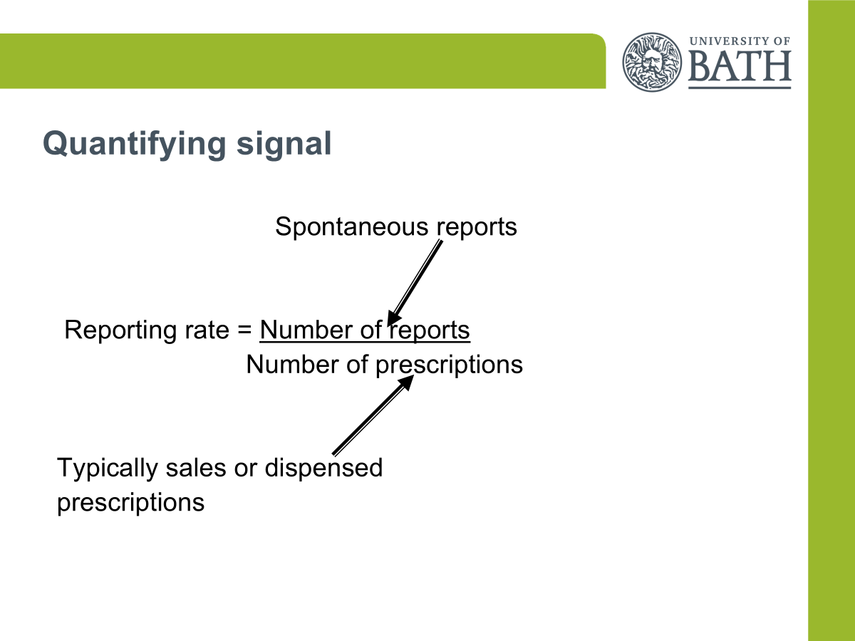 Stronger the drug-event relationship and rarity of event = fewer reports needed