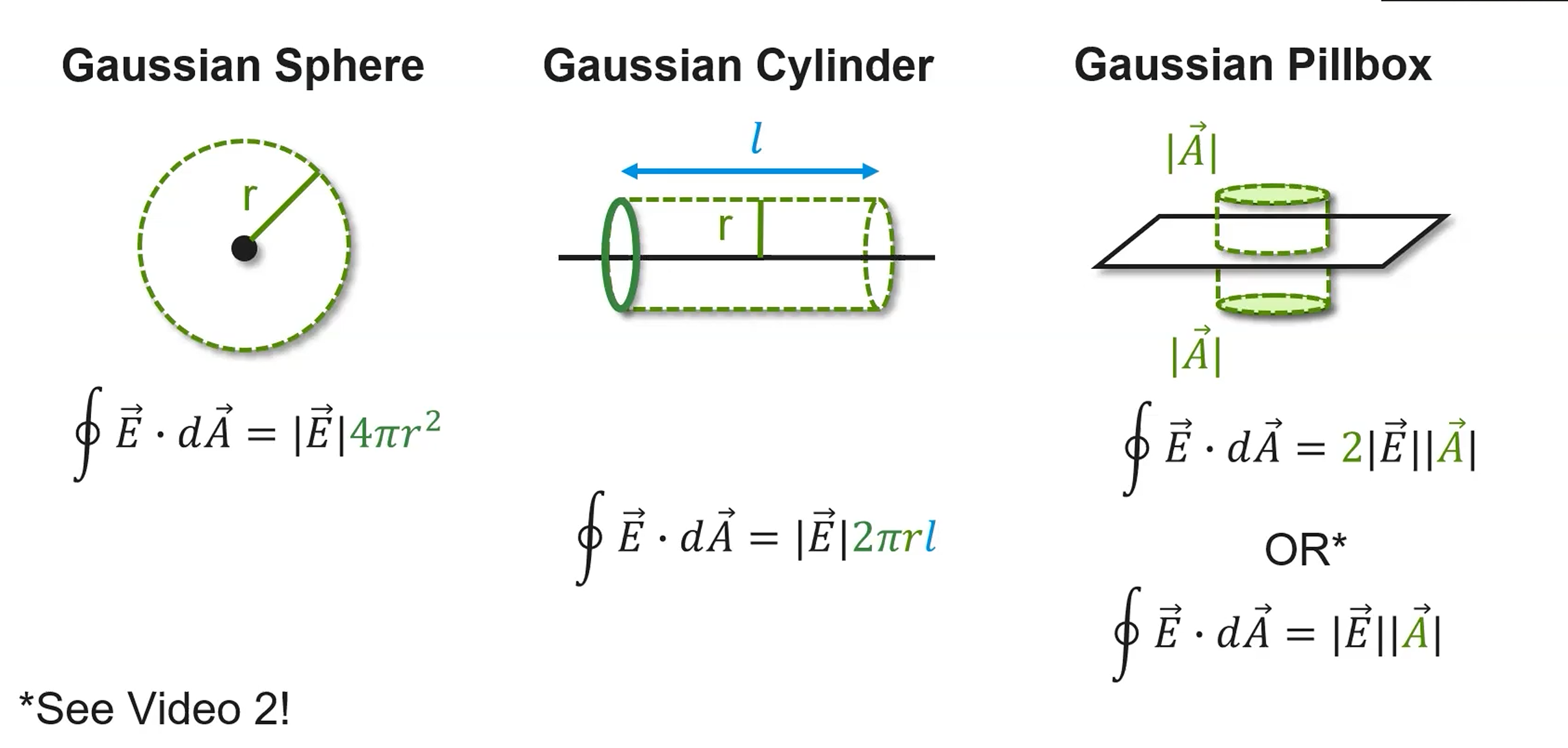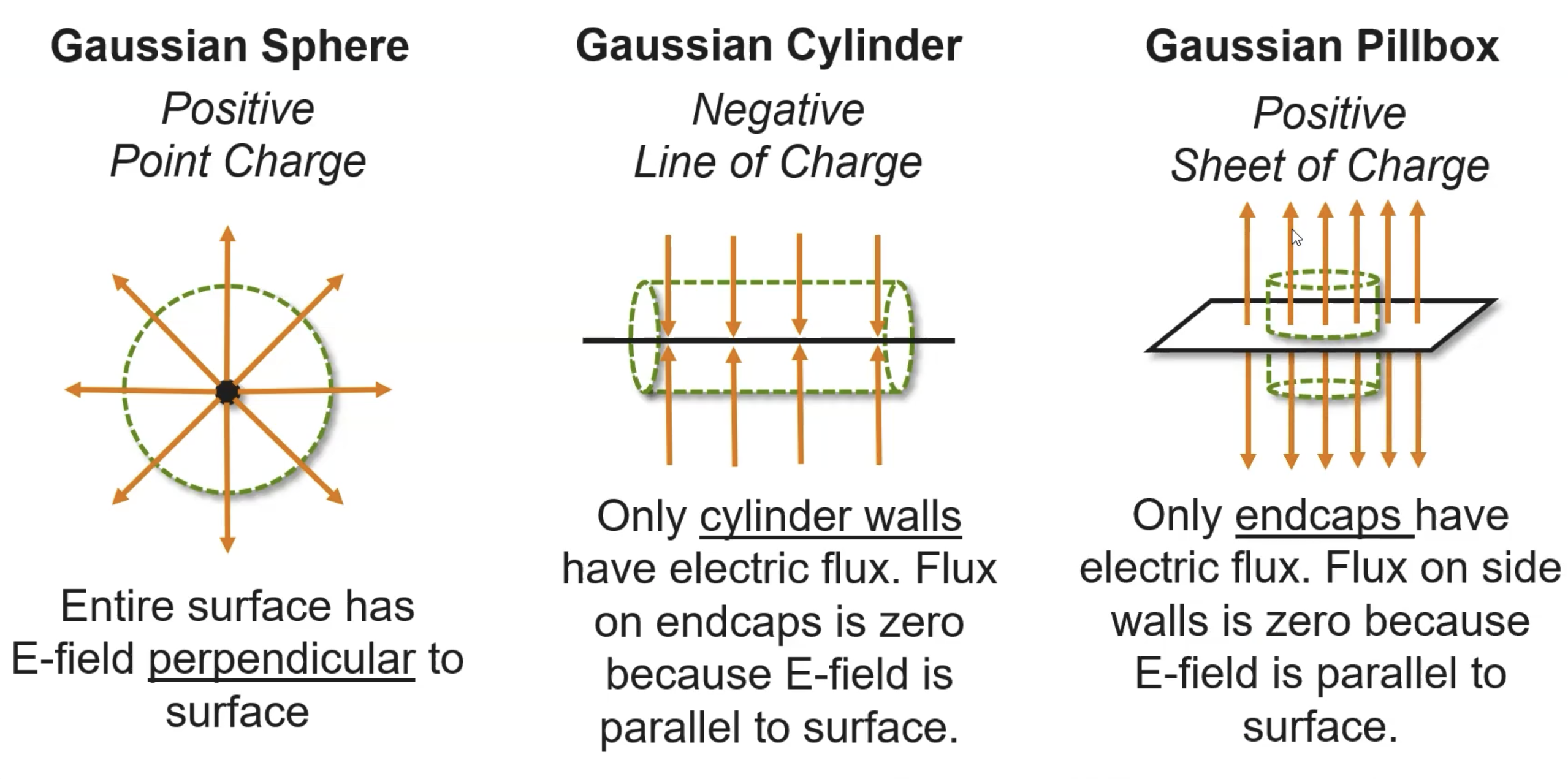 Gaussian surfaces are typically constructed such that the electric field generated by the enclosed surface is either perpendicular or parallel to different regions of the Gaussian surface → simplified surface integral