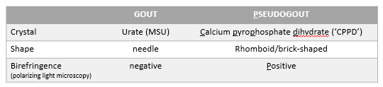 Crystal arthritis → gout and pseudogout