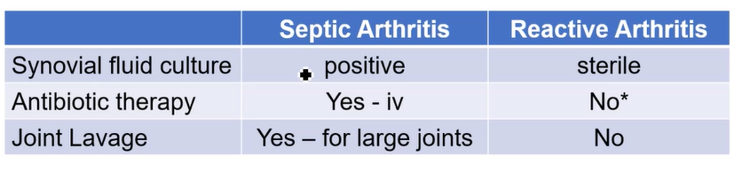 Septic arthritis in the joint, reactive arthritis is an infection elswehere which causes inflammation to the other joint