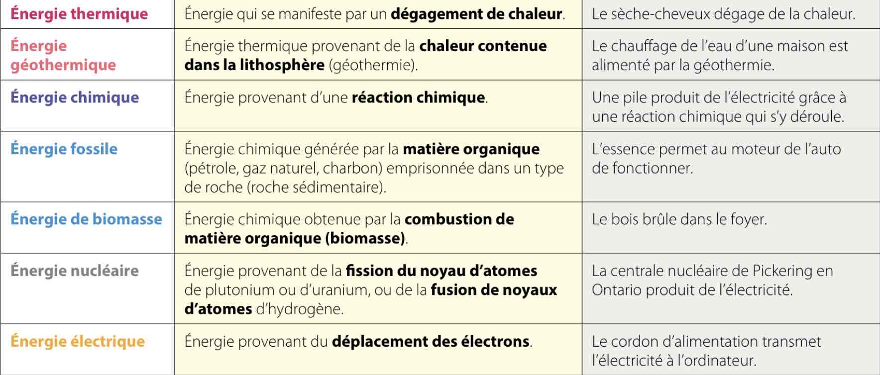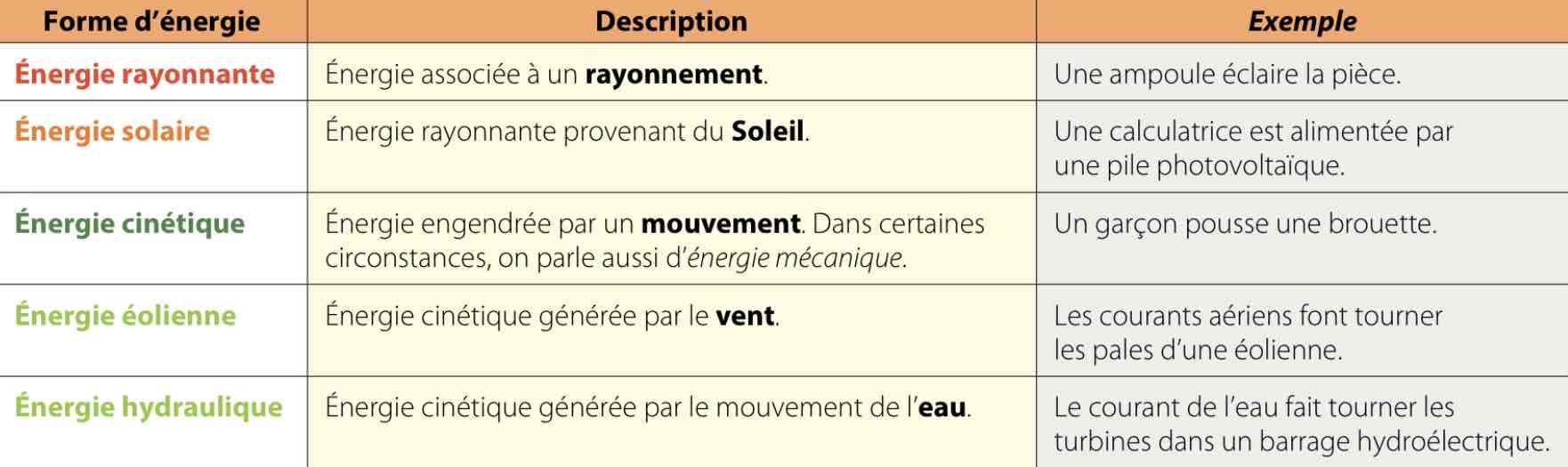 Les formes d’énergie