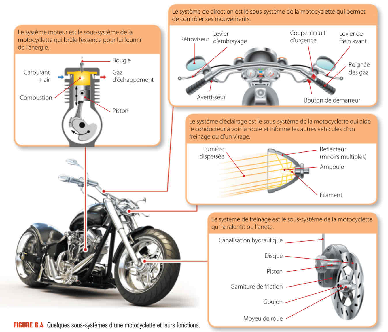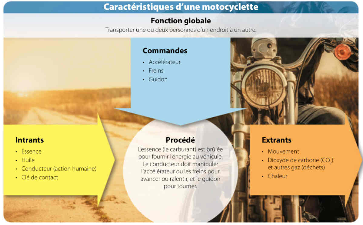Une motocyclette est un système complexe. Pour l’analyser, on le divise donc en sous-systèmes plus simples. Cela facilite leur étude et permet d’en décrire les composantes.