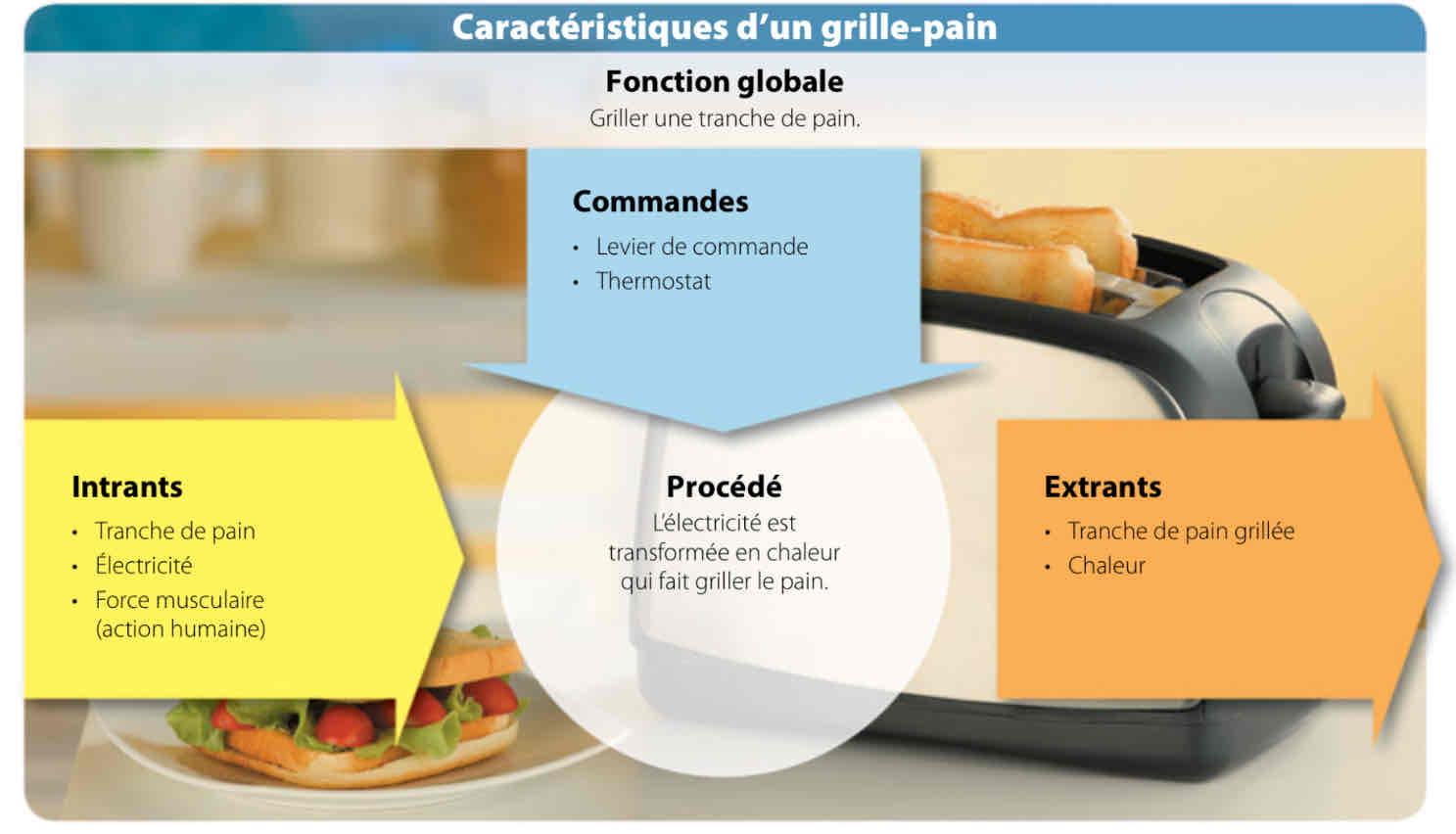 Bien que le grille-pain et la motocyclette soient deux systèmes technologiques, le schéma de leurs caractéristiques permet de visualiser rapidement leurs ressemblances et différences.