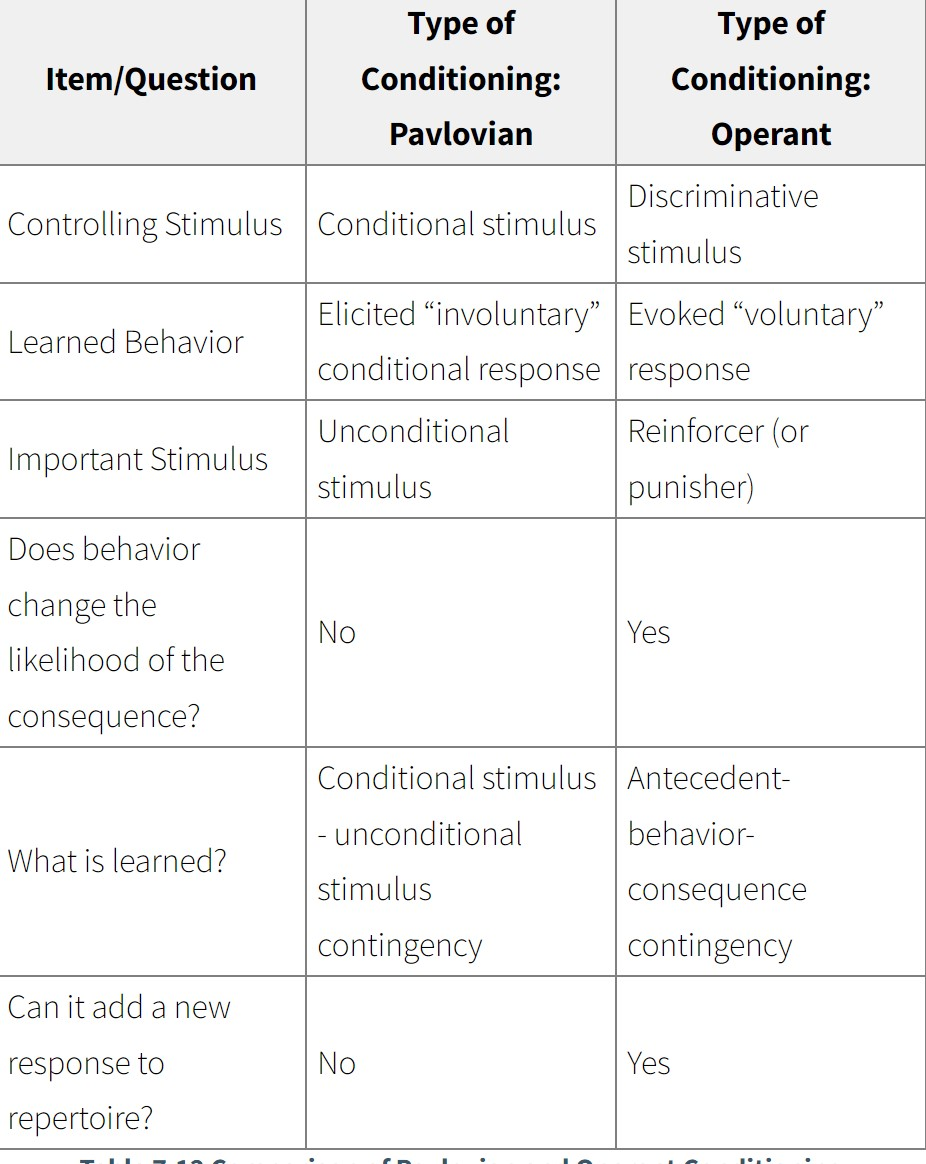 - Pavlovian and Operant Conditioning are different forms of learning.