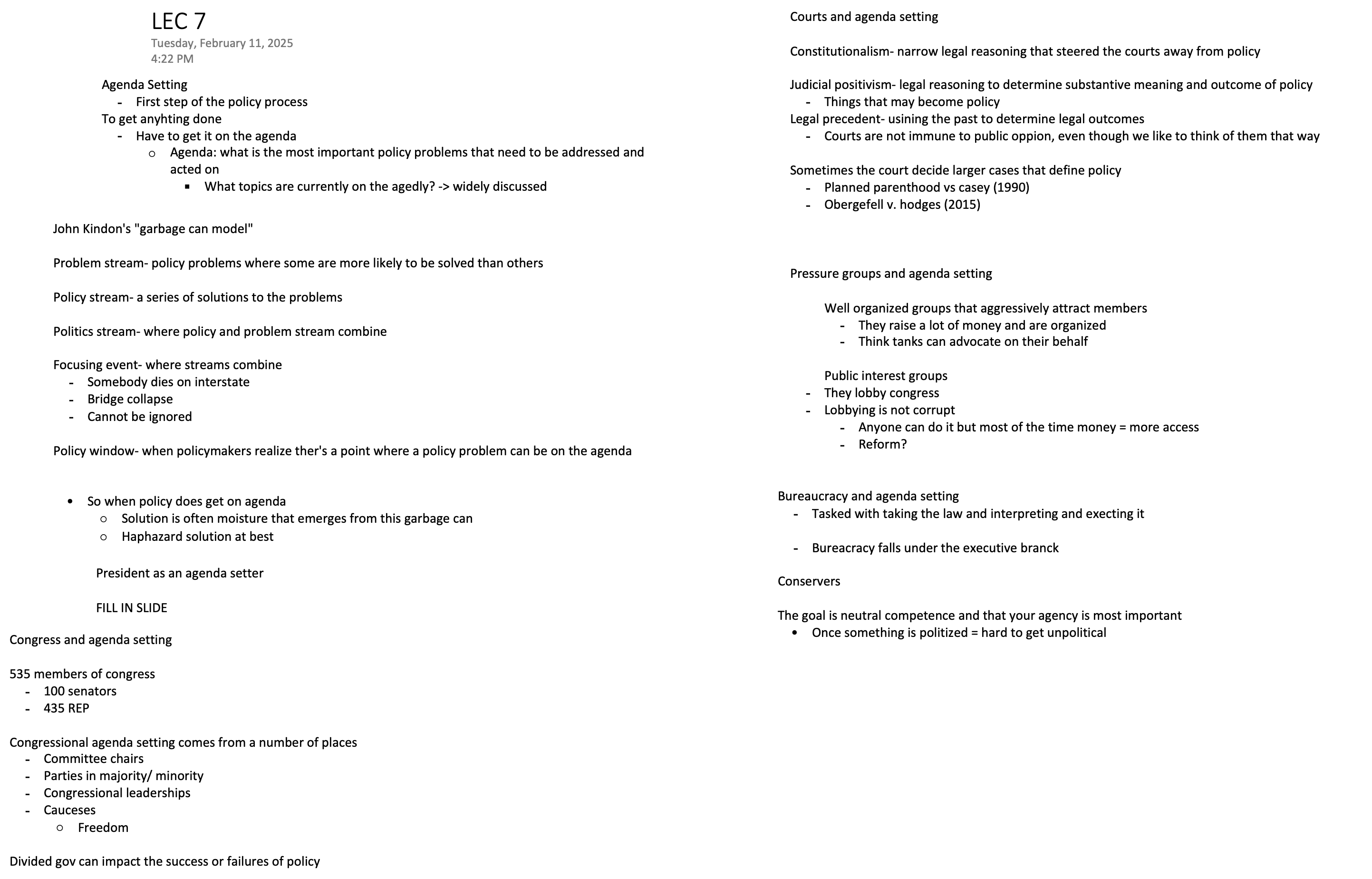 So when policy does get on agenda