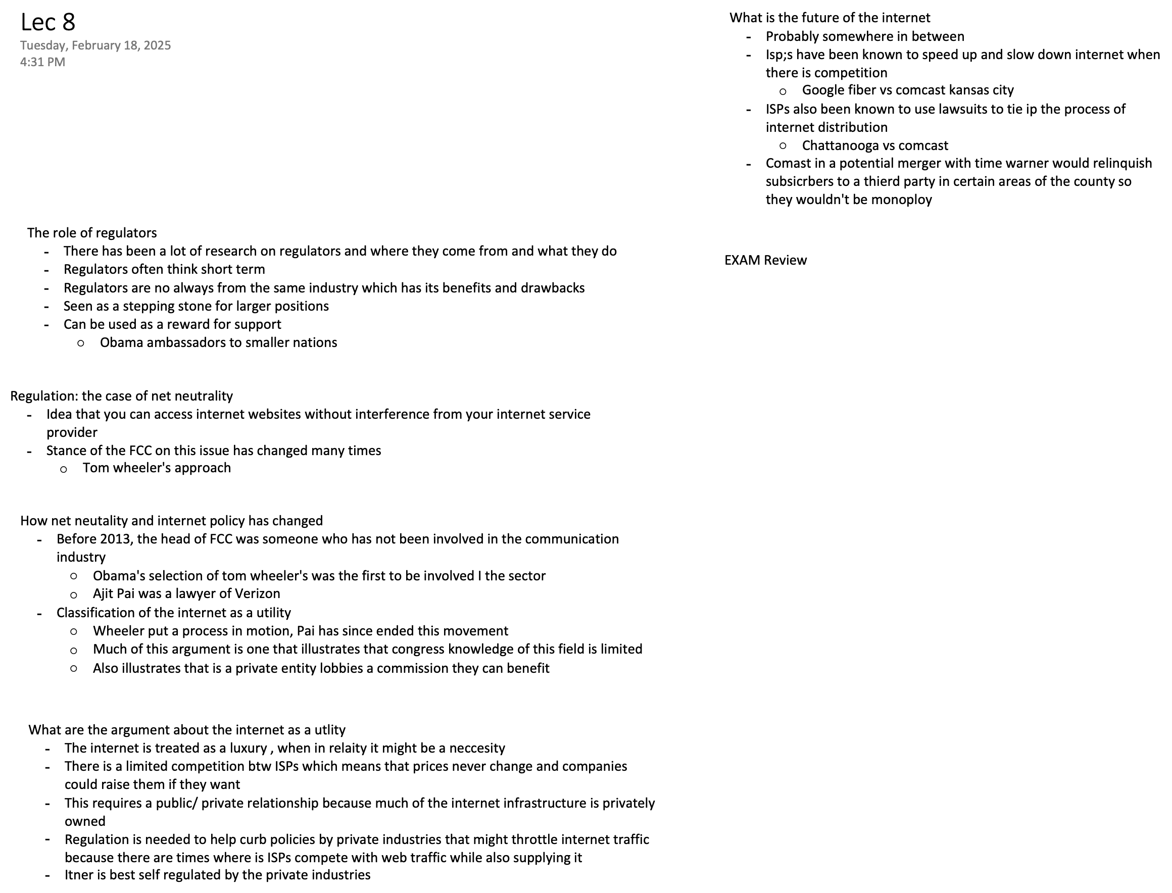 Regulation is needed to help curb policies by private industries that might throttle internet traffic because there are times where is ISPs compete with web traffic while also supplying it