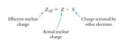 The charge of the nucleus felt by any electron can be calculated using Slater’s rule. The lower the effective nuclear charge, the larger the atomic radii.