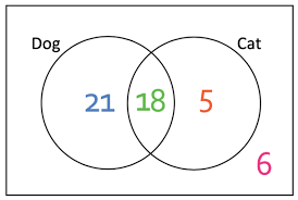 21+18+5 = 44 people owned a dog or a cat, you can write this as D u C