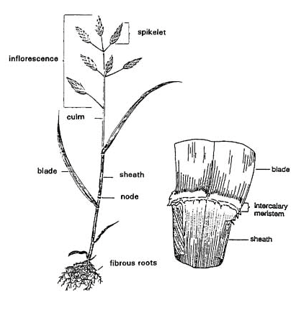 INTERCALARY—Intercalary meristems occur between 2 mature tissues. These meristems frequently occur at the bases of grass leaf blades, contributing to leaf elongation from the base. The growth resulting from intercalary meristems is considered primary growth.