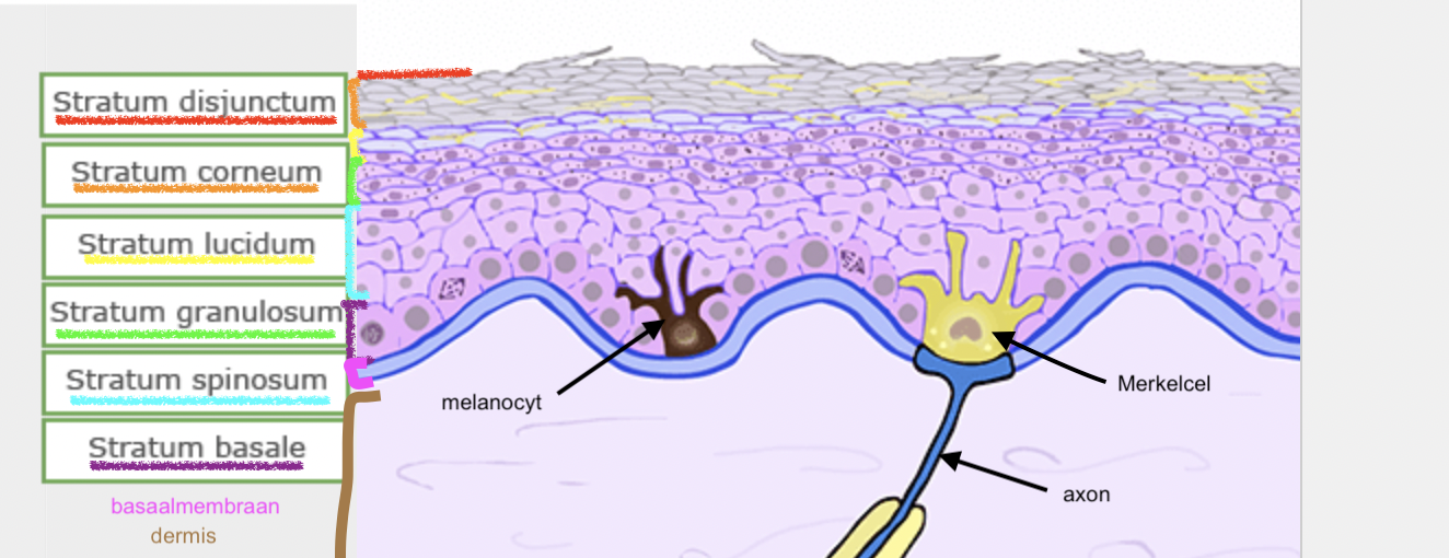 niet-keratinocyten: melanocyten, Merkel cellen (tactiele epitheliale cellen), cellen van Langerhans (intraepidermale macrofagen)