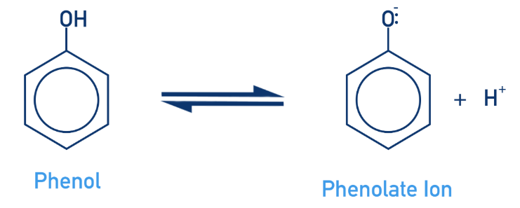 Partially dissociates, forming the phenoxide ion and a proton (H+)