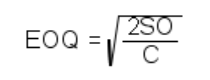 Economic Order Quantity = SQUARE ROOT of [(2 * Annual Sales * Cost to place each order)/ Annual carrying cost per unit]