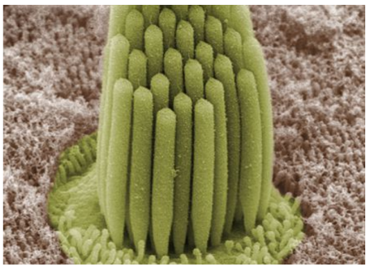 Figure 2.4.4. Stereocilia in a frog’s inner ear allow it to detect sounds from its environment. Through these, frogs have a mechanism to detect and escape from potential threats.