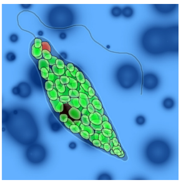 Fig 2.4.5. The flagellum (tail-like structure) helps unicellular organisms, such as the Euglena, to move from one location to another in an aquatic medium. Usually, this structure helps some photosynthetic unicellular organisms to move to locations with sufficient sunlight.