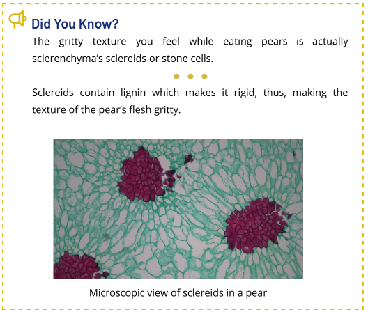 - Collenchyma and sclerenchyma provide support to the plant’s body.
