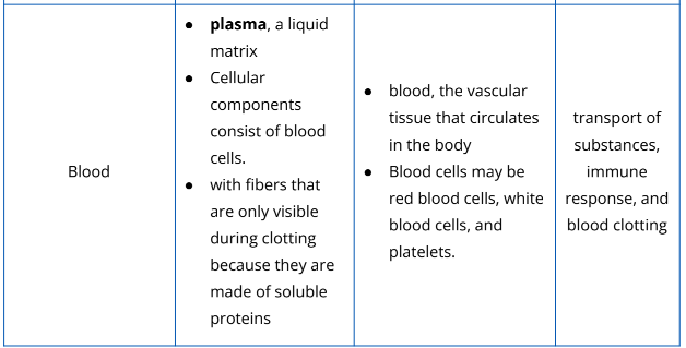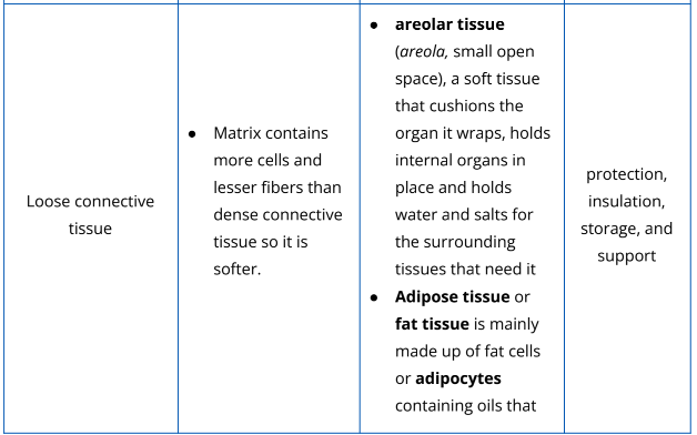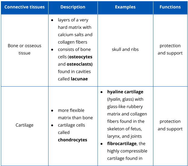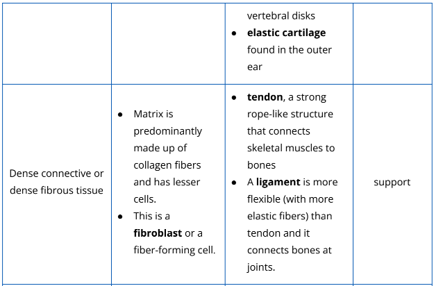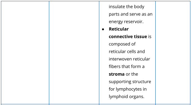 Table 2.2.3. The different types of connective tissues and their examples