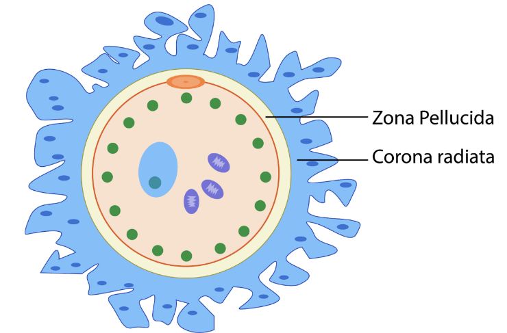 Fig.2.4.10. Egg cells are the largest cells in the human body and are necessary for sexual reproduction. They have two outer membrane layers, namely, zona pellucida and corona radiata which protect and nourish the egg cell.